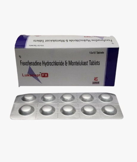 | LUKOCEPT FX TAB | Each film coated tablet contains: Fexofenadine Hydrochloride IP 120 mg. Montelukast sodium i.p equivalent to. Montelukast 10 mg. Excipients q.s. | 10 X 10 ( ALU-ALU) |