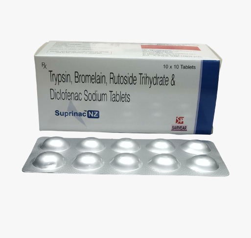 | DICLOSYS-NZ TAB | Each enteric coated tablet contains: Trypsin bp 48 mg. BROMELAIN 90MG, RUTISIDE TRIHYDRATE 100 MG, DICLOFENAC SODIUM 50MG. | 10 X 10 (BLISTER) |