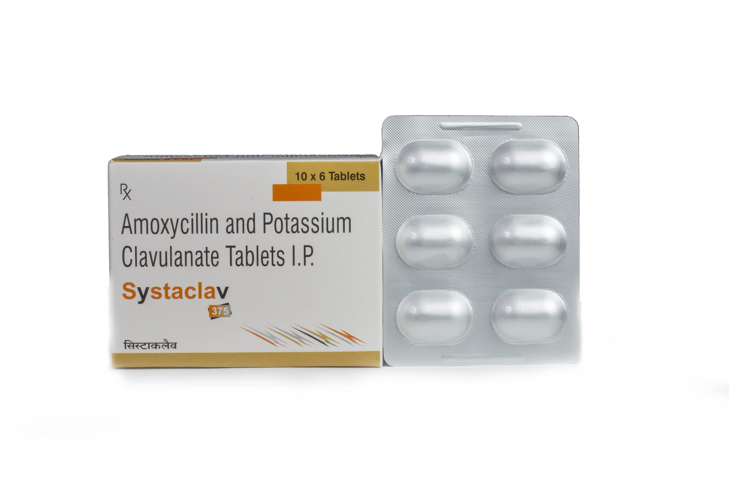 | SYSTACLAV-375 TAB | Amoxycillin 250mg +Clavulanic Acid 125mg | 10 x 6 (Foil) |
