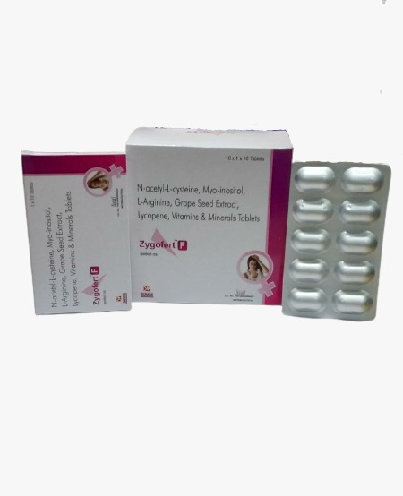| ZYGOFERT-F TABLETS | EACH TAB. CONTAINS: N-ACETYL CYSTEIN - 300MG MYO-INOSITOL - 100MG, L-ARGENINE - 50MG, GRALW SEED EXTRACT - 50MG, LYCOPENE 6%-5000MCG AND VITAMINS & MINERALS | (10 X 1 X10) BLISTER |